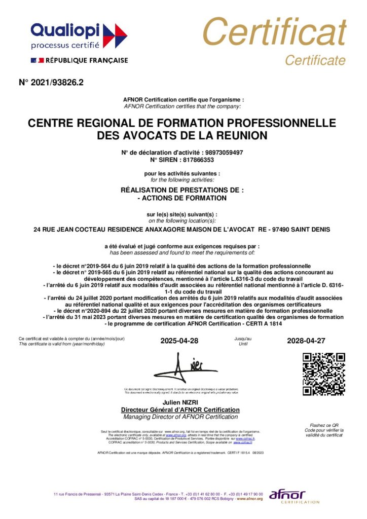• participer à des actions de formation à caractère juridique ou professionnel ;